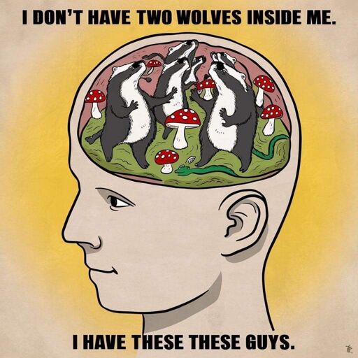 You have hot AI garbage in your head? Why does one of the badgers have a wiggly arm coming out of its head?