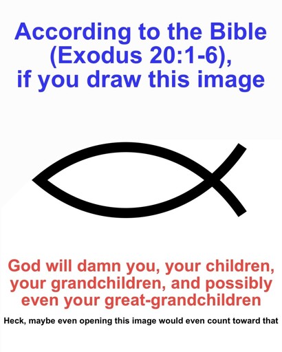 It’s supposed to be a sticker on the trunk of your car, so you have a hard time bowing down to it. Also we catholics invented some math so it’s alright. Worshipping the holy Mary, bowing down to Jesus on the cross, just no golden calfs.