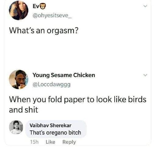 ooli3@sopuli.xyz to Funny@sh.itjust.works · 1 month agooregano bitchi.redd.itimagemessage-square34linkfedilinkarrow-up1547arrow-down112