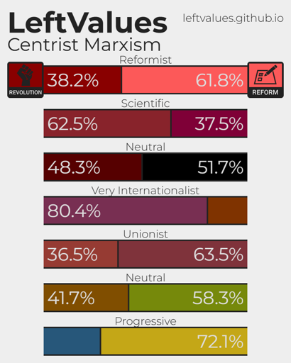 where do you stand on the socialist spectrum? i’ll start: my socialist views are a fusion of market socialism, welfarism, georgism and left-libertarianism - i took the leftvalues quiz (as shown in the photo attached in this post), and i got “centrist marxism”. you DON’T have to take the quiz though.