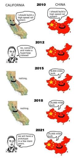 Where China just does it and can plan long term. At this point I don’t k kw which system is better. Used to think democracy but it just seems to crumble and honestly most people don’t care enough that they are easily controlled.