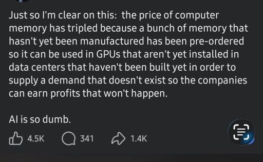 If you’re a tech CEO that knows it’s all crap, but the market conditions are such that going all-in on AI is going to triple your share price for no good reason, you’ll probably be in a “get that money or we’ll find somebody who will” situation.