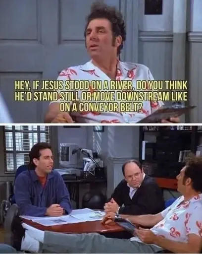 minus-square0x0@lemmy.ziplinkfedilinkEnglisharrow-up14·edit-221 days agoHe’d stand still, so effectively on a fixed point relative to the planet. Otherwise there’d be reports of him wobbling with the waves in that accurate and trustworthy book some randos wrote decades after he went back to his spaceship died… Also, is this an European river or African river?