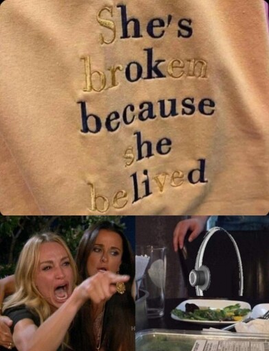 She’s broken because she belived… wat.