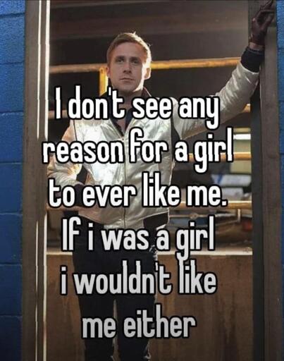 Tbh, I don’t really want to be in a relationship with anyone whose standards are low enough to like me. Guess I’ll be alone forever. 🫡