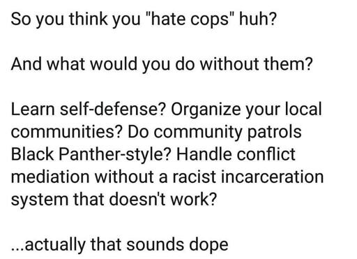 compostgoblin@slrpnk.net to solarpunk memes@slrpnk.netEnglish · 6 months agoWho needs cops anyway?slrpnk.netimagemessage-square7linkfedilinkarrow-up16arrow-down10