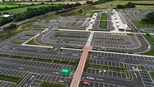 Aerial photographs show the 850-space site devoid of vehicles, despite its finished glossy tarmac, bus stops and green spaces. All major construction work was finished in January, followed by landscaping last month.