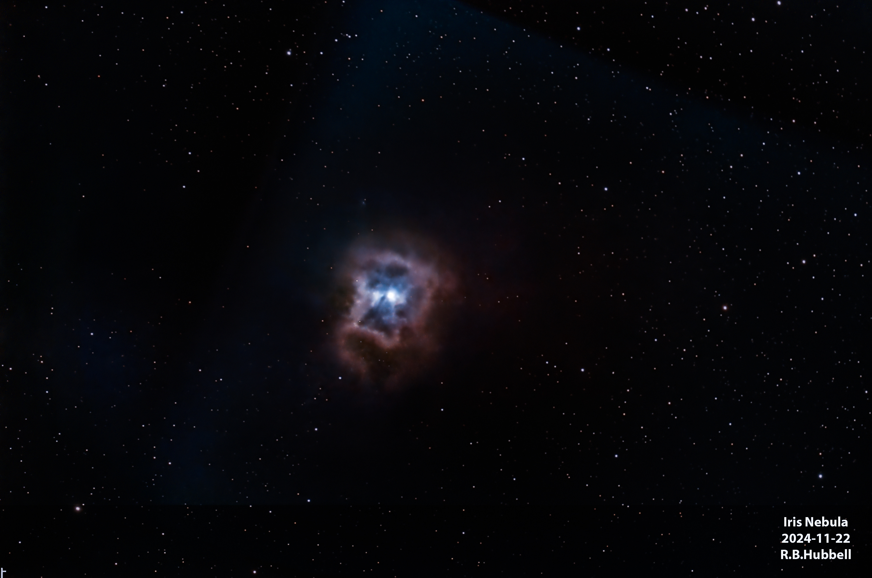 The Iris Nebula is 1,300 light years from Earth and is six light years in diameter.