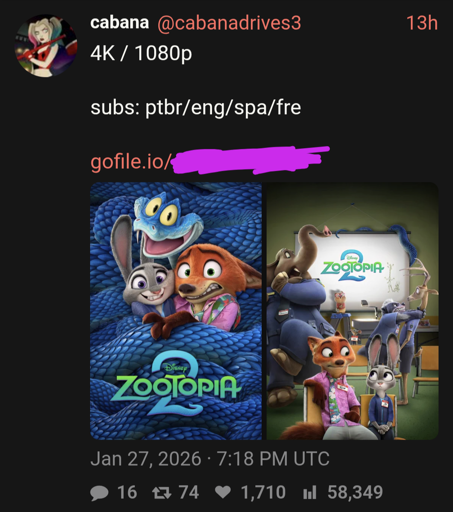 LiamBox@lemmy.ml to Piracy: ꜱᴀɪʟ ᴛʜᴇ ʜɪɢʜ ꜱᴇᴀꜱ@lemmy.dbzer0.comEnglish · 20 days agofor some reason, there are twitter accounts distributing movies in cloud storage rather than torrents.lemmy.mlimagemessage-square65linkfedilinkarrow-up1198arrow-down15file-text