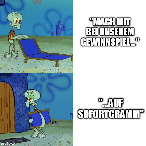 es ist echt die pest. die gleichen leute, die mir so stolz erzählt haben, dass sie nun auch endlich von gesichtsbuch weg sind, sind nun alle auf sofortgramm. das ist der gleiche konzern ihr pappnasen. und dann teilen die immer inhalte davon oder von tiktok. mein handy so: willst du die app runterladen, weil dus ohne eh nicht sehen kannst? nein danke. spart euch die mühe. leitet diesen kack einfach nicht weiter.