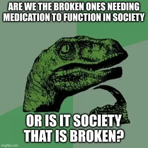 There’s still reasons to take medication and treatment of ADHD. Even though society is built to just make people on the top money and grind you down doesn’t change that fact.