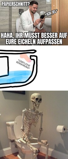 Wie ging das? Im Sitzen pinkeln ist als Mann viel entspannter, man lässt den Schniepi eintauchen, dann ist es so schön leise beim Laufen lassen.