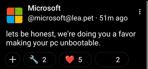 not_IO@lemmy.blahaj.zone to Microblog Memes@lemmy.worldEnglish · 10 days agolet's be honestlemmy.blahaj.zoneimagemessage-square20linkfedilinkarrow-up1459arrow-down15file-text