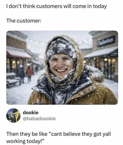 I have to drive a van for work, no way I’m convincing my 70 year old french canadian boss that some snow is a good reason to shut down working for the day.