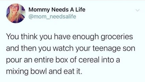 To be fair, my husband will just have 6 bowls of cereal in a row all of a sudden.