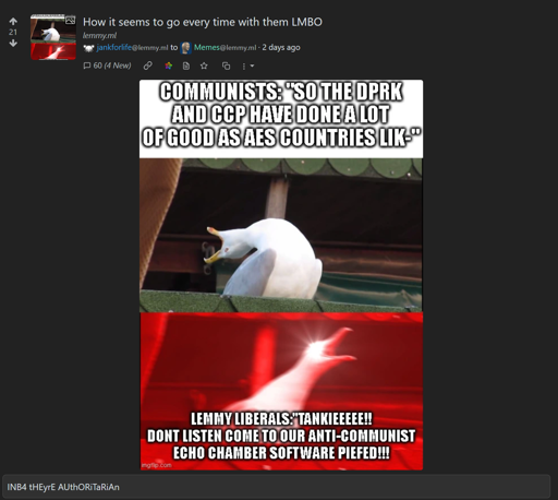 I don’t ban tankies who rarely wander into here because if I do, their claims of this being an echo-chamber become true.
