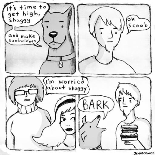 But the cartoon implies Shaggy isn’t high yet in the first panel