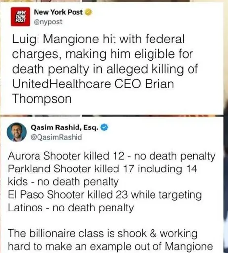 arrow-up11.55Karrow-down1imageLuigi Mangione Eligible for the Death Penaltyslrpnk.netFive@slrpnk.net to Luigi Mangione@lemmy.worldEnglish · 3 months agomessage-square81linkfedilink