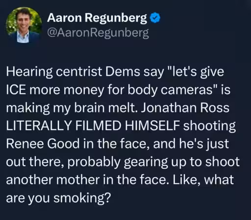 Having body cameras is great, but only if there’s consequences for acting illegally. ICE knows they won’t face any repercussions while fascists are running the government.