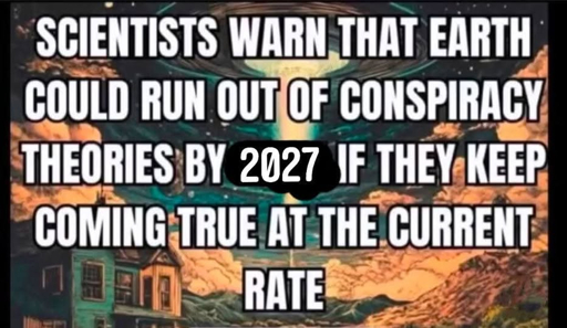 I haven’t seen any conspiracy theories coming true lately, we’ve known Trump was heavily involved with Epstein since long before he was even elected so that one isn’t a conspiracy. Anything else I missed?
