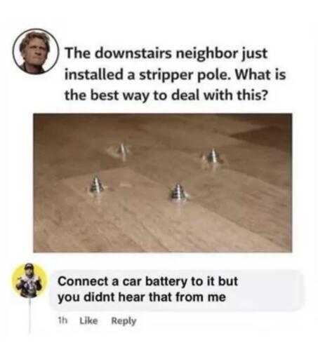 Cut the hands off the downstairs neighbour with it. Now they don’t need a stripper pole. Pole gets removed and everything goes back to normal (after all the court cases and prison time etc).