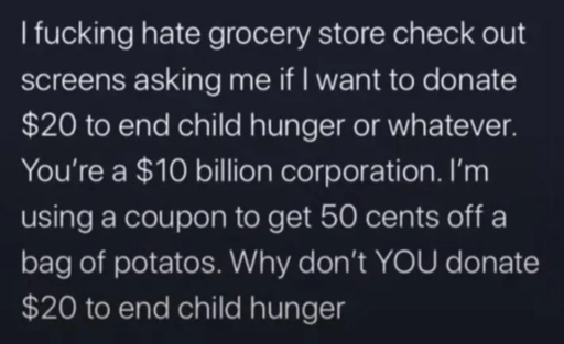 If they donate money out of their own profits, they CAN write that off. Which of course is also money you gave them, except it’s money you gave them in order to buy their products, not for the purpose of having them donate it.