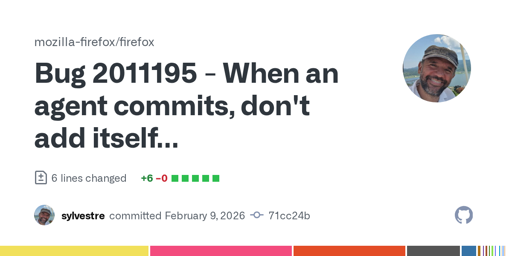 Usually code contributions by various LLMs are easily identifiable because the agent is the author for the git commit. Mozilla on the other hand seem to be explicitly encouraging unattributed LLM code in Firefox. Also note jakearchibald, Mozillas AI spin doctor whenever devs question their intentions, lying about the reasons for this change. I think their true intentions are to muddy the waters to hide the amount of slop contributions in Firefox.