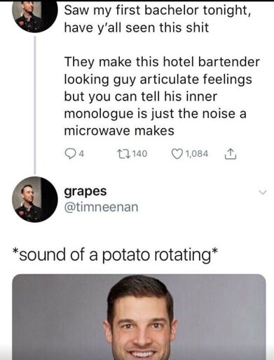 No way it’s occurred to him to microwave a potato. That’s a Vegetable, and he’s a Man.