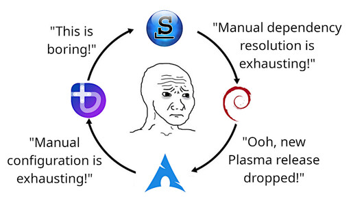 I think I just reached the point where my NixOS is configured exactly as I want, so now the system just works and works without me changing anything. 😭 I’m gonna have to start having sex since I can no longer justify it on the lack of time.