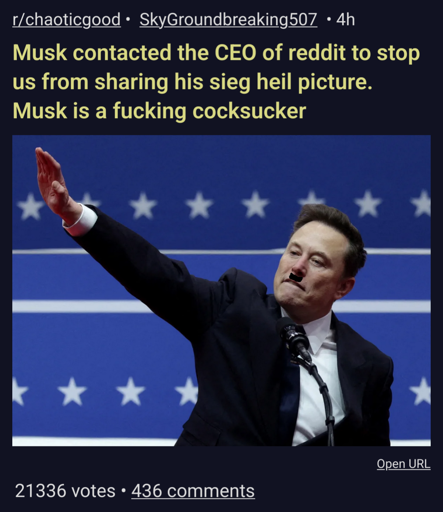 ByteOnBikes@slrpnk.net to Reddit@lemmy.world · 1 year agoI don't understand. He literally does this twice on tv, but he wants it removed from social media?slrpnk.netimagemessage-square8linkfedilinkarrow-up18arrow-down11cross-posted to: BoycottUnitedStates@europe.pub