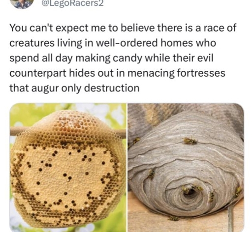 And in the darkness of the earth, Melkor twisted the bees with all his malice. This is how the race of wasp came to be.