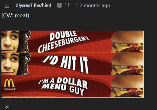 The vegans in their community asked for this CW. It makes sense to me, I get repulsed by seeing meat knowing what was done to the animals to get the meat. It’s like seeing a gory image, especially if you’ve seen what happens in a vegan documentary or something before. The people in this thread are being very weird, if I had to guess they lean conservative.