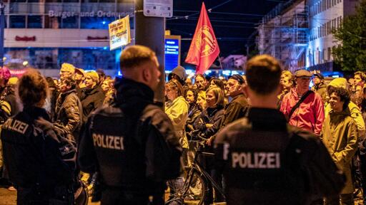 In Darmstadt haben sich rund 800 Gegendemonstranten einer rechten Versammlung zur Erinnerung an die “Brandnacht” im Zweiten Weltkrieg entgegengestellt. Der geplante Fackelmarsch blieb aus - am Ende standen 15 Teilnehmer mit Leuchstäben auf dem Luisenplatz.