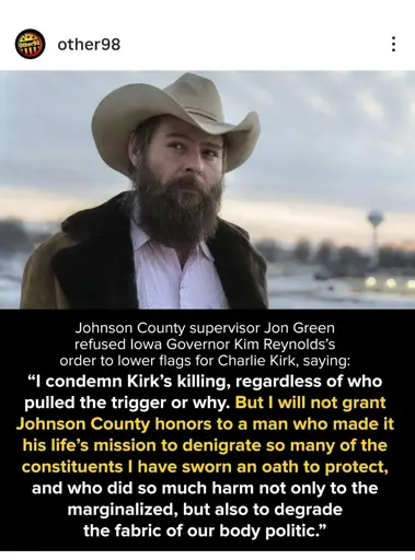 dude was endorsed by Bernie Sanders: https://www.press-citizen.com/story/news/2021/05/10/bernie-sanders-endorses-lone-trees-jon-green-johnson-county-iowa-supervisor-race/5029381001/