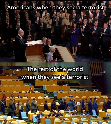 minus-squareunexposedhazard@discuss.tchncs.delinkfedilinkarrow-up61·9 days agoFor others wondering this happened today: https://www.independent.co.uk/news/world/middle-east/netanyahu-un-speech-israel-gaza-b2834372.html This dude is such a clown. THE CURSE -> Shows a bunch of countries that his country has been committing warcrimes against for decades.