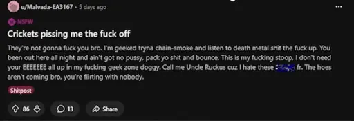 One time a cricket was in the crack in the concrete just outside my sliding door and I could barely hear my game over the sound of this thing so I did what any completely normal mentally sane person would do and poured boiling water over the crack