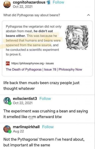 Pythagoras what a weird dude.