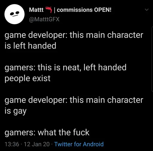 minus-squareprole@lemmy.blahaj.zonelinkfedilinkarrow-up3·6 days agoSomeone should overlay the graph showing the rise of the acceptance of left-handedness over time, with a graph of Zelda releases over time.