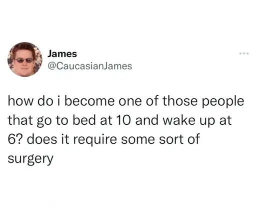 Same. I’m finally good at it but I just don’t like the vibe of mornings and the people who love them.