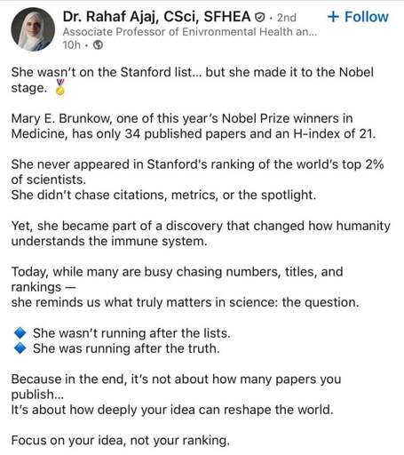 Also some discussion about this on r/labrats if anyone wants to go over to the forbidden site: https://reddit.com/r/labrats/comments/1o1pgo1/mary_e_brunkow_one_of_this_years_nobel_prize
