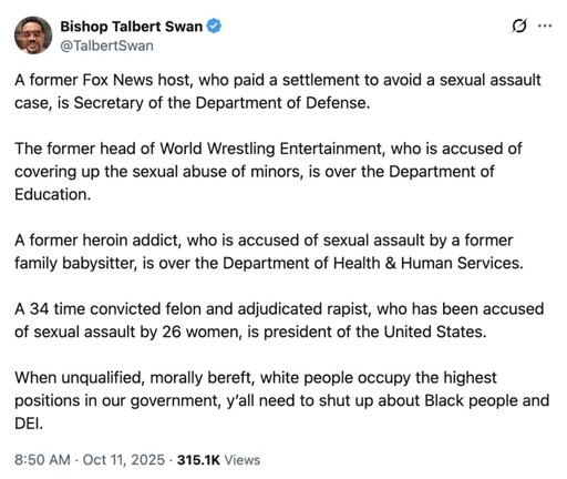 OP does not seem to get that it is precisely BECAUSE of all these criminals and incompetents that Black People and DEI are in jeapoardy. This was the literal strategy.