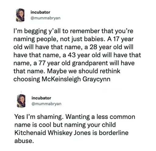arrow-up1895arrow-down1imageKid Nameslemmy.dbzer0.comStamets@lemmy.dbzer0.com to People Twitter@sh.itjust.works · 6 months agomessage-square189linkfedilink