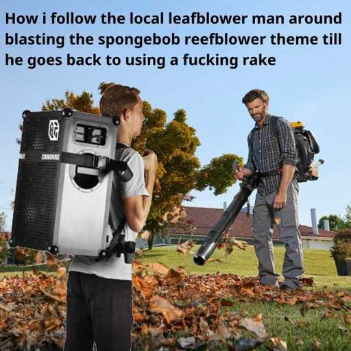 minus-squareErdalion@lemmy.worldlinkfedilinkarrow-up5·5 months agoWhere I used to live, they would start at 7 AM. EVERY DAY, INCLUDING THE WEEKENDS. I was tempted to buy a leafblower for myself, follow the leafblower guy around, and just throw all the leaves back at him.