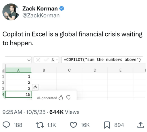 arrow-up1893arrow-down1imageWe put the Thing That Can't Do Numbers™ in your spreadsheetsprogramming.devirelephant [he/him]@programming.devM to iiiiiiitttttttttttt@programming.devEnglish · 5 months agomessage-square104linkfedilinkcross-posted to: fuck_ai@lemmy.world