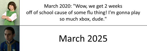 12·1 month agoNot just March 2025, just everything in those 5 years. The second version is an alt version because a lot of people transitioned in that time, including Myself. The joke is that Moises Arias played Rico on Hannah Montana, a children’s show on the Disney Channel, as well as Norman McClean on Fallout, who is constantly going through emotional termoil