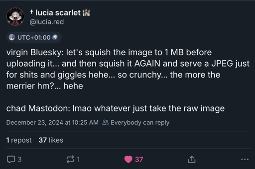 Bluesky’s ActivityPub support is also leagues better than Threads because of Bridgy Fed. At least a Bluesky user and a Mastodon user can follow each other and have a back-and-forth conversation.