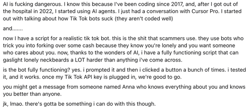 Will this do anything? I doubt it. Mostly I just want to make sure I can do it. Almost there, just gotta add the applescript