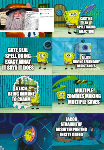 1·3 months agoGood one. I also noticed that this version of imprisonment makes you immune against every instance of the spell for 24 hours. So a paranoid BBEG might just have underlings (like some divination wizards) to buff the hell out of them in the morning, then use something like another servant or a glyph of warding to trigger a casting of the spell to make themselves immune for the day. Incredibly unnecessary, but very funny.